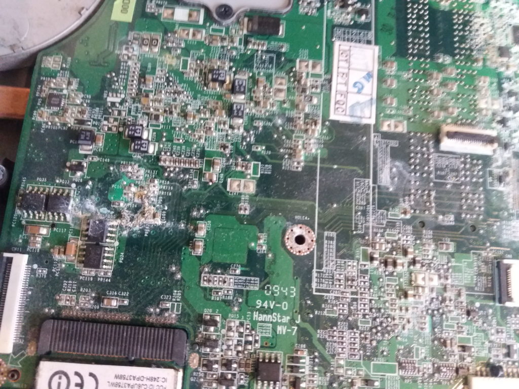 На плате залитого ноутбука под воздействием жидкости и тока начинается коррозия. И плата в прямом смысле слова начинает гнить, а элементы распаянные на ней рассыпаются в “труху”. Именно поэтому необходимо как можно быстрее обесточить ее и обратиться к специалисту. Наш мастер по ремонту ноутбуков разберет Ваш ноутбук, удалит остатки жидкости, почистит и обработает плату, что спасет ее от дальнейшей коррозии и увеличит шансы на успешный ремонт.
